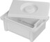 Desinfektionswanne aus Kunststoff mit Siebeinsatz und Deckel.