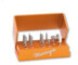 Dieses Präparations Set ermöglicht dem Zahnarzt erstmals, bei der Hohlkehl- und Stufenpräparation für Vollkeramik ohne spezielle Hilfsmittel eine optimale Materialstärke mit vordefiniertem Abtrag zu erreichen. Für das Anlegen einer definierten Hohlkehle eignen sich die torpedoartigen Diamantinstrumente mit einem axial verlaufenden Führungsstift. Die Hohlkehle wird leicht supragingival zirkulär angelegt, während der polierte Führungsstift dabei ohne Druck rund um den Zahn geführt wird.