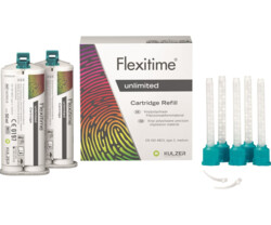 Entdecken Sie Flexitime unlimited, das innovative Abformmaterial, speziell dafür entwickelt Ihren Abformprozess zu vereinfachen und zu standardisieren. Ob Implantat-/Teleskop-Abformtechnik oder Monophasentechnik – dieses Material deckt alle Indikationen ab. Flexitime unlimited basiert auf den erprobten Flexitime Präzisionsabformmaterialien und bietet Ihnen flexible Verarbeitungszeiten zwischen 1:00 und 2:30 Minuten. Das ermöglicht stressfreies Arbeiten mit höchster Präzision und Komfort für Ihre Patientinnen und Patienten. Dank hervorragender physikalischer Eigenschaften können Sie sicher sein, stets zuverlässige und präzise Ergebnisse zu erzielen.