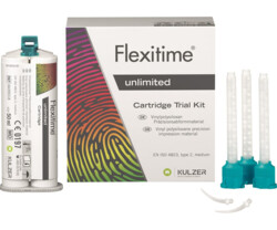 Das Flexitime-System von Kulzer wurde entwickelt, um den höchsten Ansprüchen moderner Prothetik gerecht zu werden. Die intelligente Zeitsteuerung und aufeinander abgestimmten Materialien passen sich optimal an Ihre individuellen Präferenzen und Anforderungen an. Für perfekte Abformungen und stressfreie Arbeitsprozesse bietet Ihnen das System eine flexible Verarbeitungszeit bei immer kurzer Mundverweildauer. Erleben Sie die Balance der physikalischen Eigenschaften, die Ihnen außergewöhnliche Präzision und maximale Anpassungsfähigkeit gewährleisten – auch für herausfordernde Fälle. Die Flexitime-Produktserie ist ideal für alle Abformtechniken und ermöglicht Ihnen passgenaue Ergebnisse für eine reibungslose prothetische Versorgung. Mit zusätzlichen Lösungen wie Flexitime Bite, einem scanbaren Bissregistriermaterial, oder Flexitime Fast & Scan, für schnelle und digitale Arbeitsabläufe, erfüllt das System die Bedürfnisse moderner Praxen. Greifen Sie jetzt zu und erleben Sie moderne Prothetik mit Flexitime bei uns im NETdental Online-Shop!