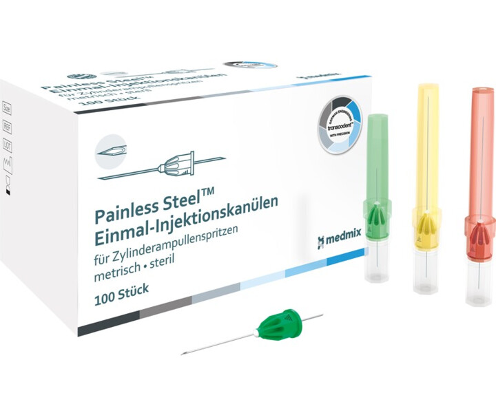 Die transcodent Painless Steel Dental Injektionskanülen, konzipiert mit einem Kunststoffsockel für den Gebrauch mit Zylinderampullen-Spritzen für einen sicheren Patientenkomfort. Ihre silikonisierte Kanüle und der 3-Kanten-Lanzettenschliff ...